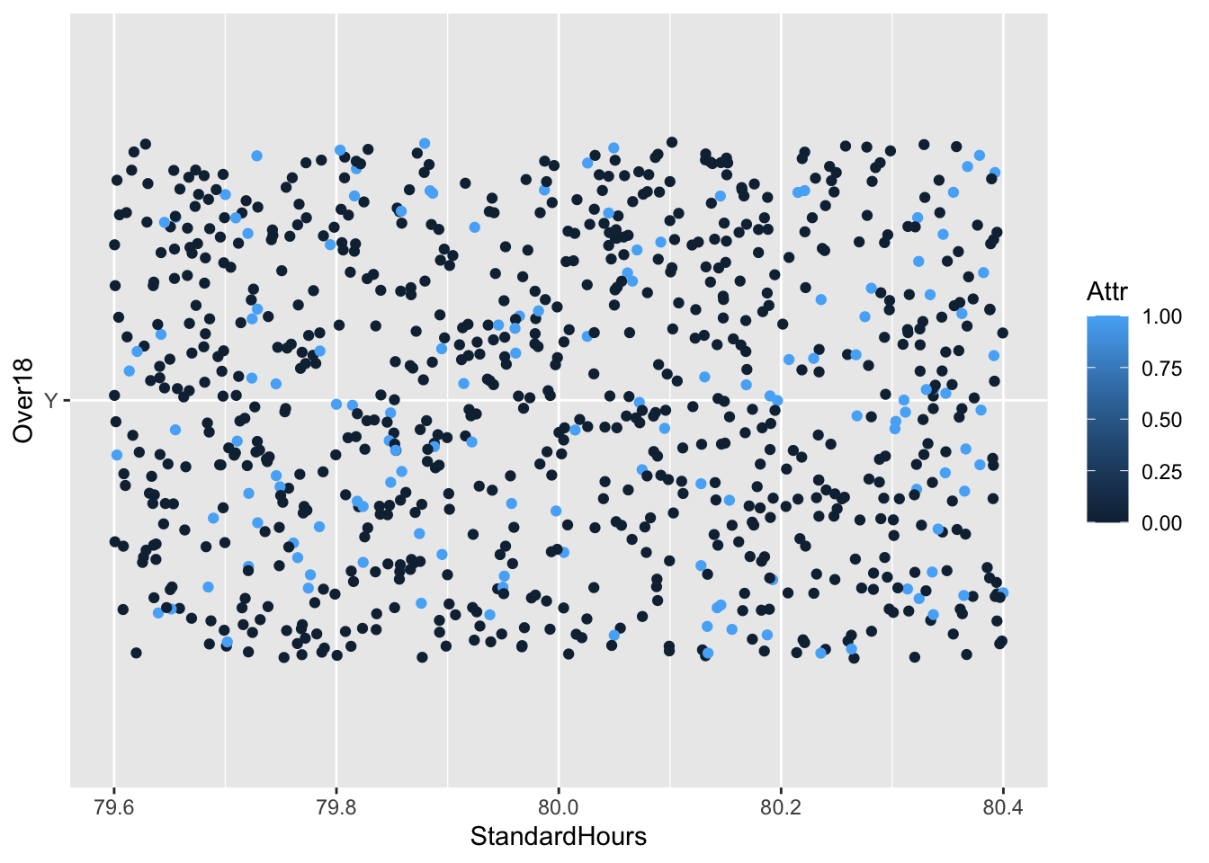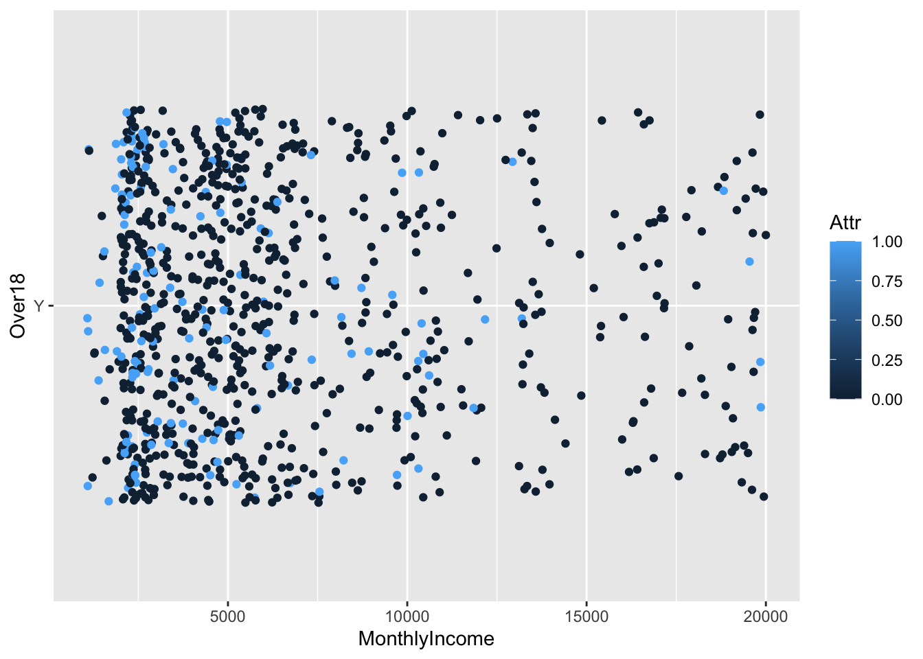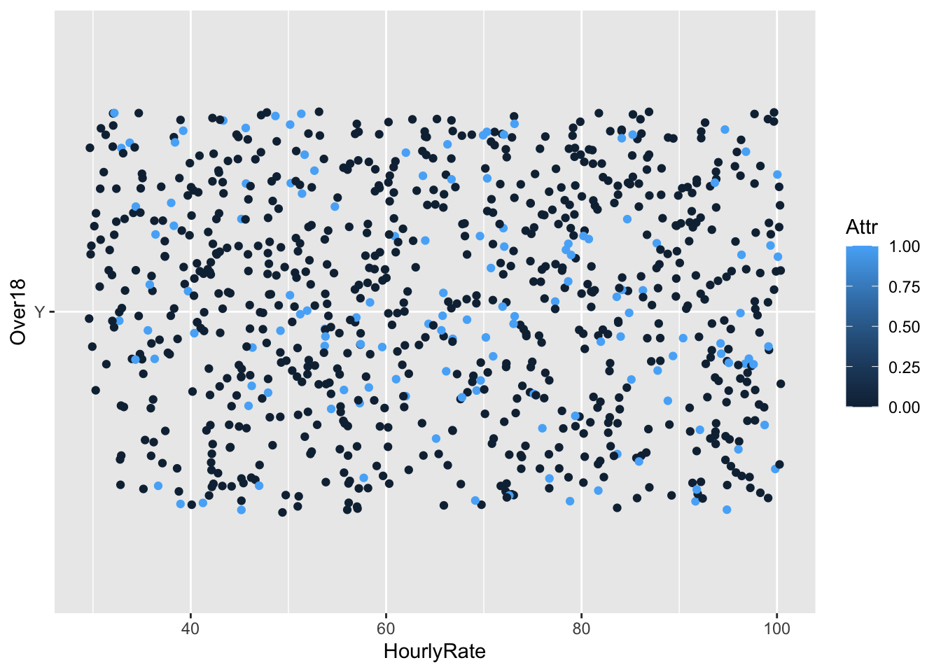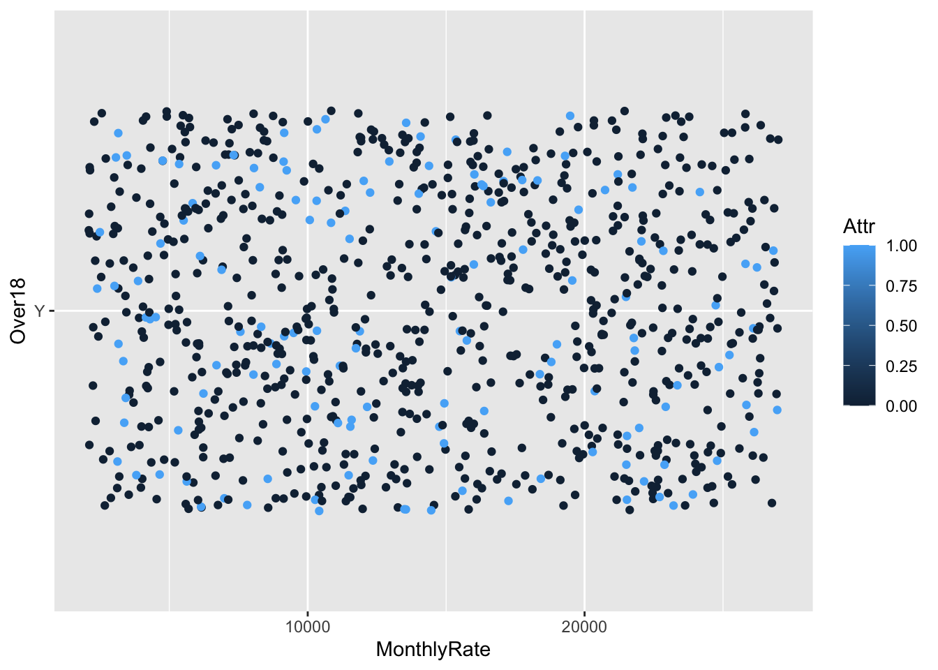 ## MonthlyIncome MonthlyRate NumCompaniesWorked Over18 OverTime PercentSalaryHike PerformanceRating RelationshipSatisfaction StandardHours