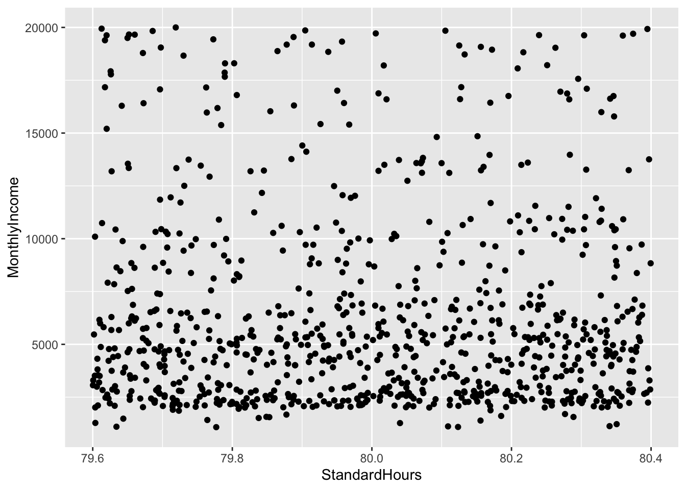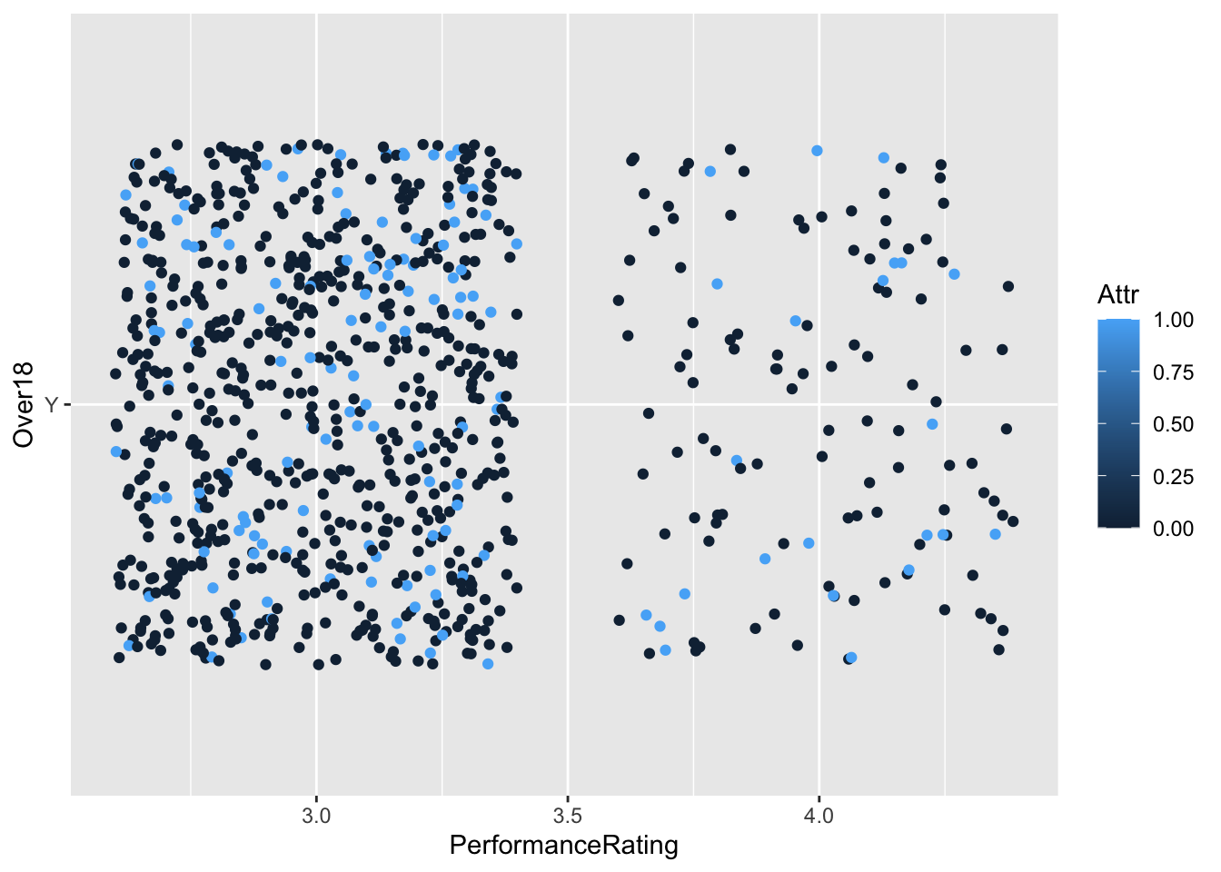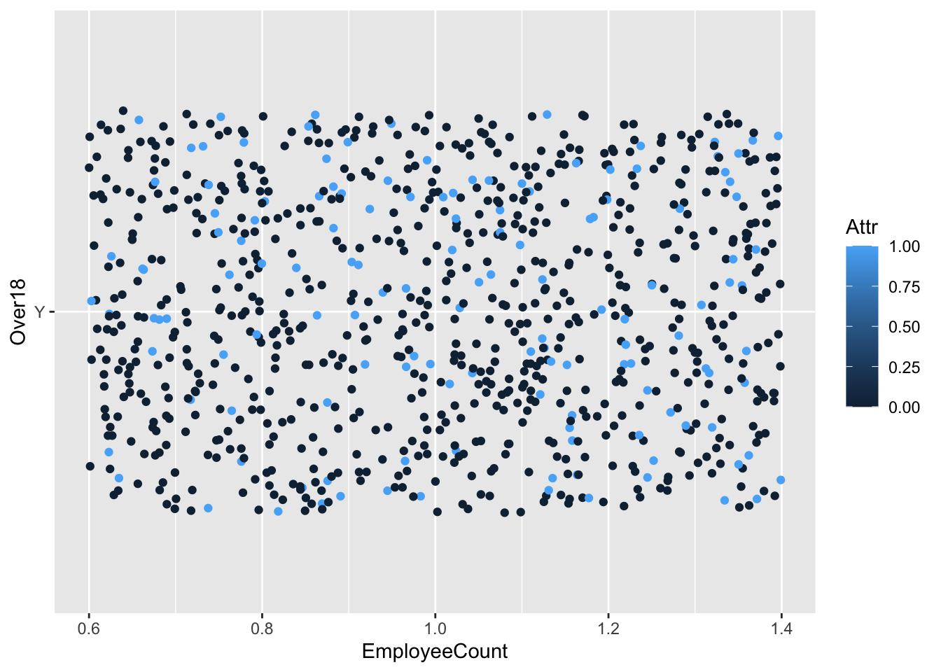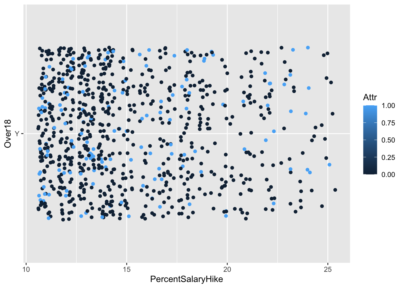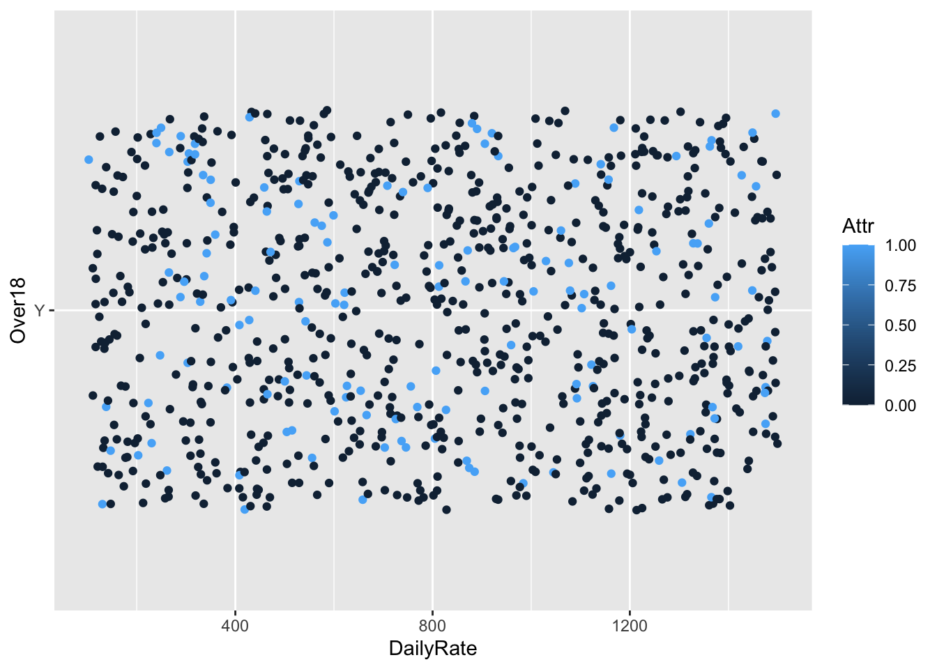 ## MonthlyIncome MonthlyRate NumCompaniesWorked Over18 OverTime PercentSalaryHike PerformanceRating RelationshipSatisfaction StandardHours
