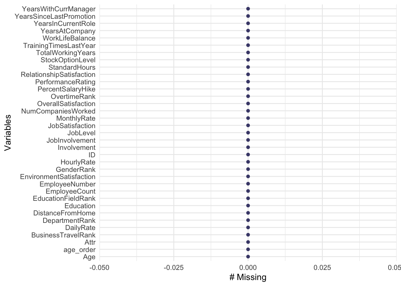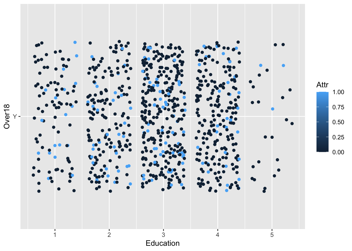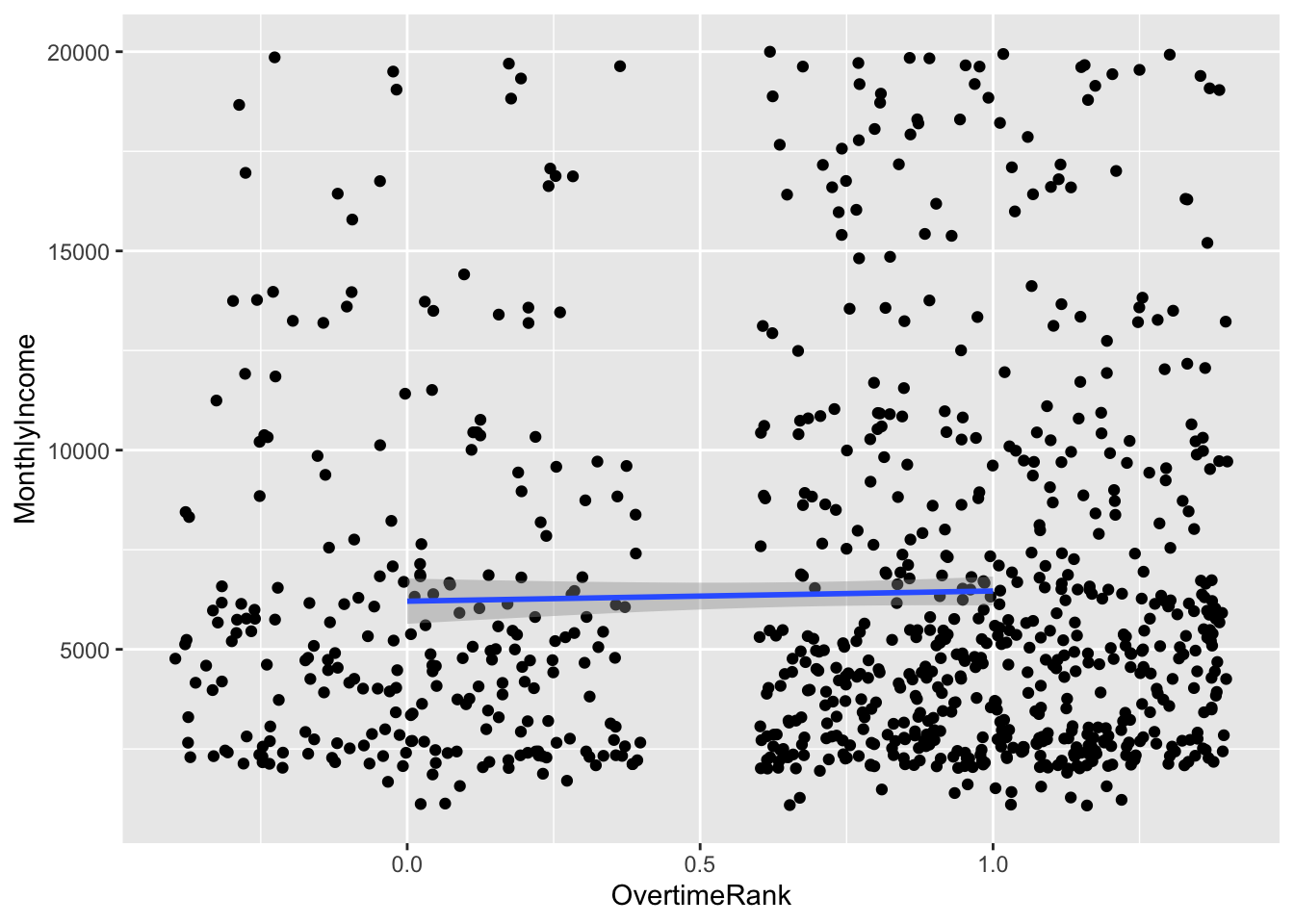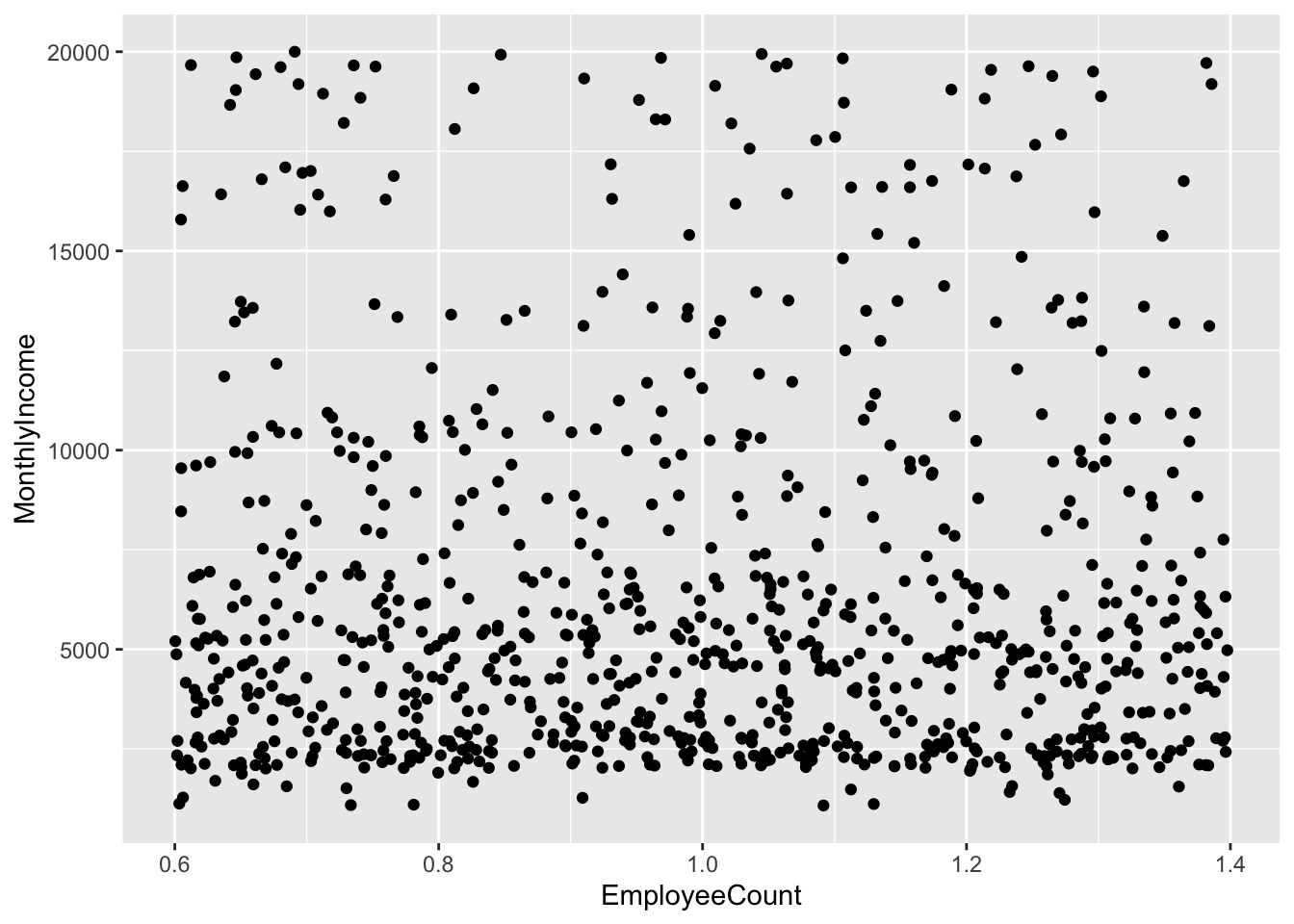 ## MonthlyIncome MonthlyRate NumCompaniesWorked Over18 OverTime PercentSalaryHike PerformanceRating RelationshipSatisfaction StandardHours