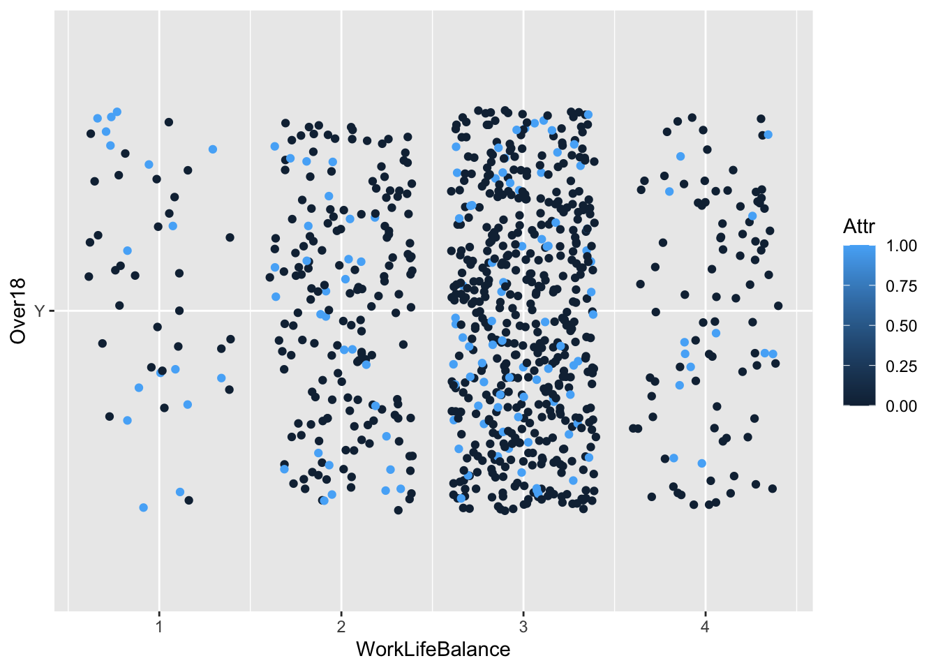 data %>% ggplot(aes(x = WorkLifeBalance, fill = Attrition)) + geom_boxplot()