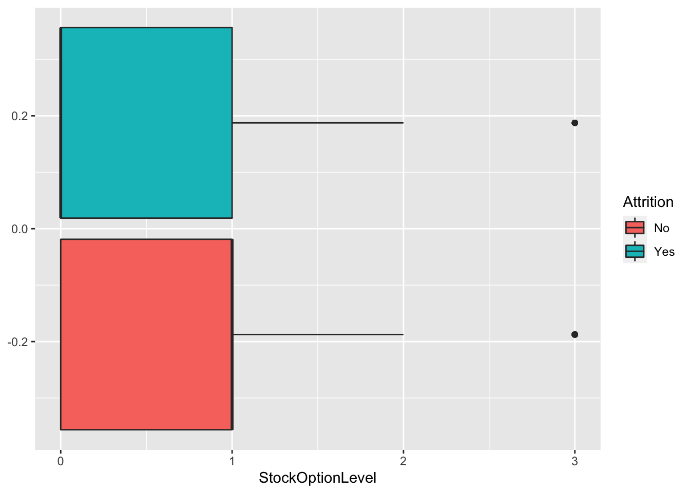 data %>% ggplot(aes(x = StockOptionLevel, fill = Attrition)) + geom_boxplot()