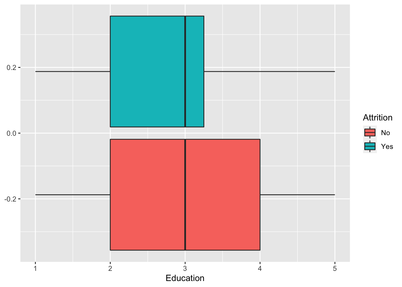 data %>% ggplot(aes(x = Education, fill = Attrition)) + geom_boxplot()